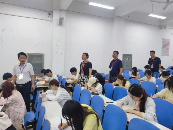 2024年6月19日,2023-2024学年第二学期期末考试正式开始。经理彭荣胜及其他领导班子成员一行深入考场进行现场巡视。