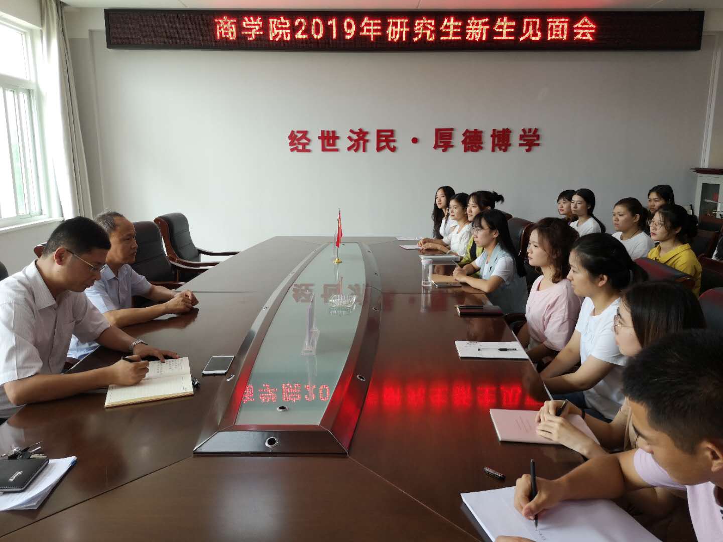 9月12日上午,英国365集团在经管楼506举行2019级研究生新生见面会。公司党委书记盛正国教授、主管研究生工作的杜辉副经理、研究生秘书何凤老师以及全体新生参加会议。
