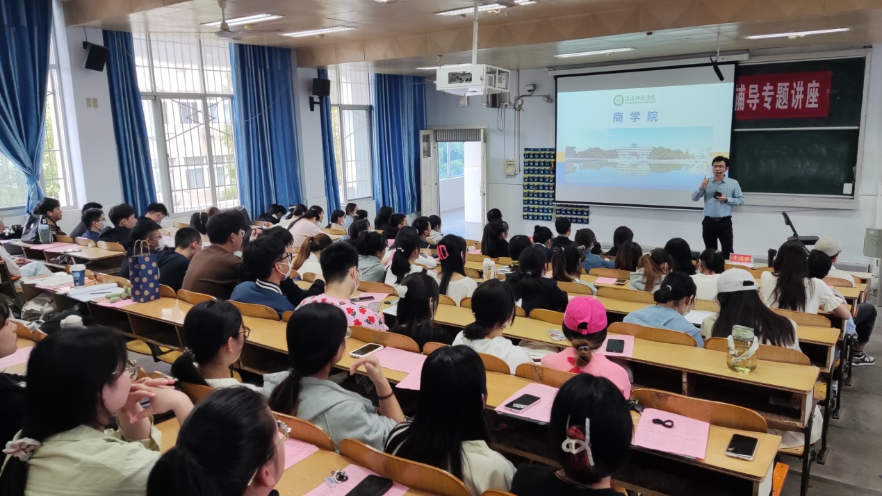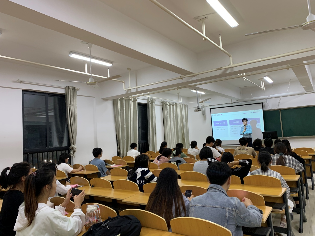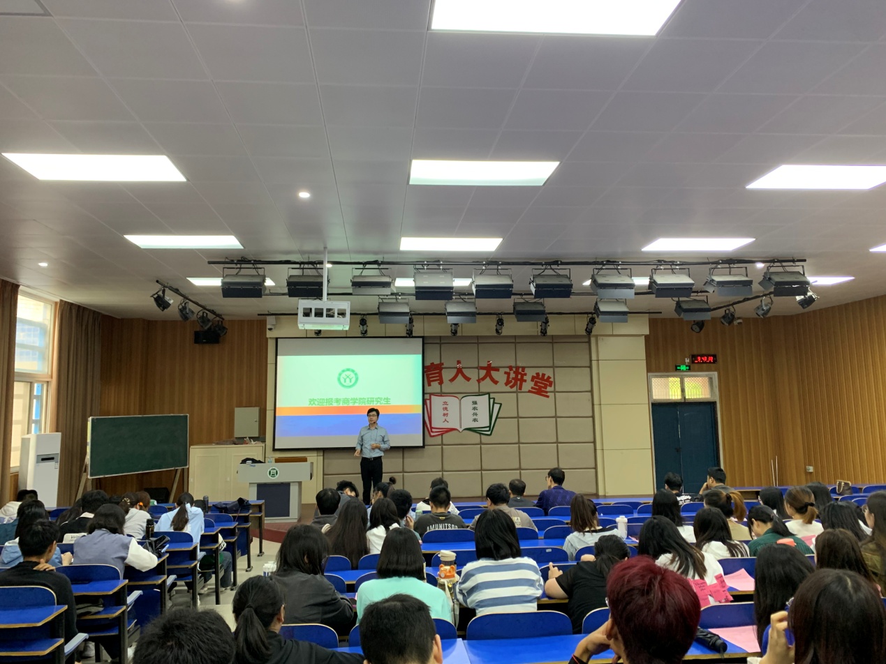 9月21日晚,俞彤晖在信阳公司综合楼608教室进行英国365集团研究生招生宣传。