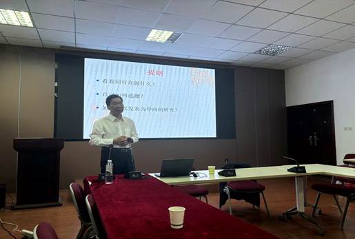 苗教授围绕于青年学者成长的关键环节,系统阐述了“看看同行在做什么”“自己如何选题”“如何做以发表为导向的研究”三大主题。他结合自身丰富的学术研究经验,为在座师生提供了切实可行的科研方法指导,内容翔实、见解深刻,现场师生受益匪浅。报告结束后,苗教授与青年教师进行了深入的面对面交流。针对教师提出的国家级课题申报选题等问题,苗教授给予了专业而细致的解答,现场互动热烈,交流富有成效。