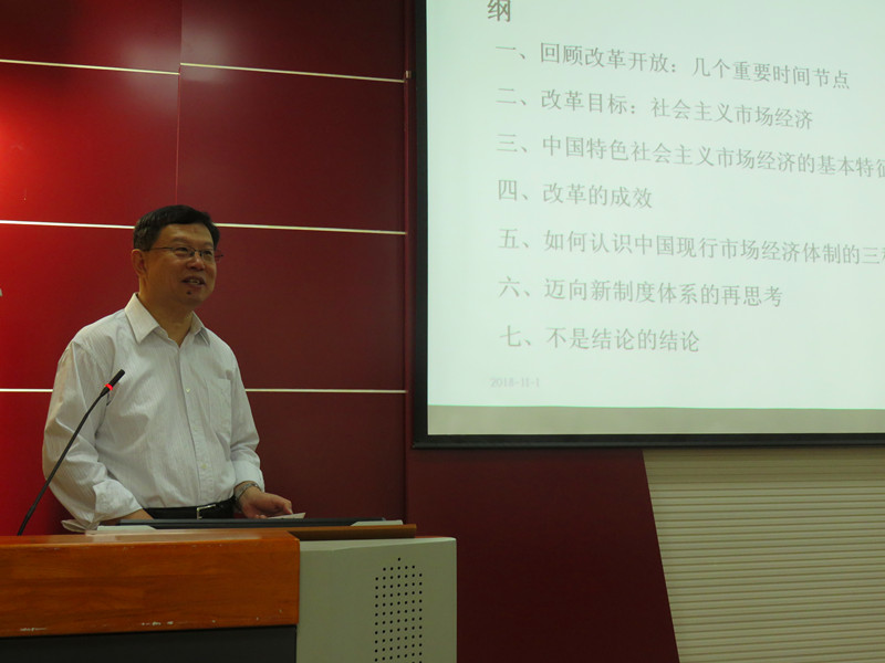 报告会中,臧旭恒教授首先回顾了我国改革开放的几个重要时间节点,对我国社会主义市场经济体系的发展历程进行了详细阐述,并分别从社会主义市场经济改革目标、中国特色社会主义市场经济基本特征及改革成效等方面向与会师生作了详细报告。会后,臧旭恒教授与公司师生进行了充分交流,为师生答疑解惑。