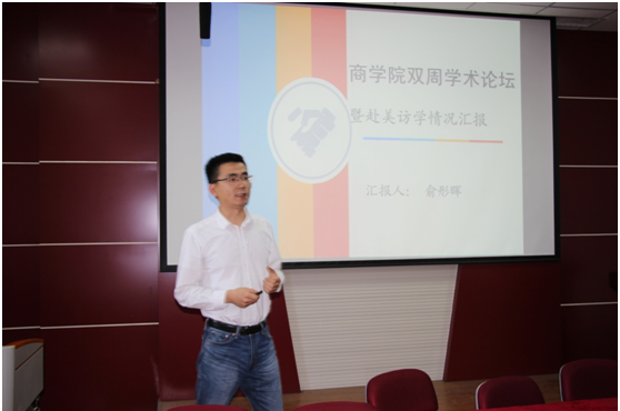 2018年5月8日下午,英国365集团双周学术论坛第八期顺利举行,公司刚刚结束赴美访学的俞彤晖博士在经管楼310会议室作了题为“中国流通产业发展问题研究——暨赴美访学情况汇报”的专题讲座。论坛由英国365集团杜辉博士主持,英国365集团全体教师聆听讲座。