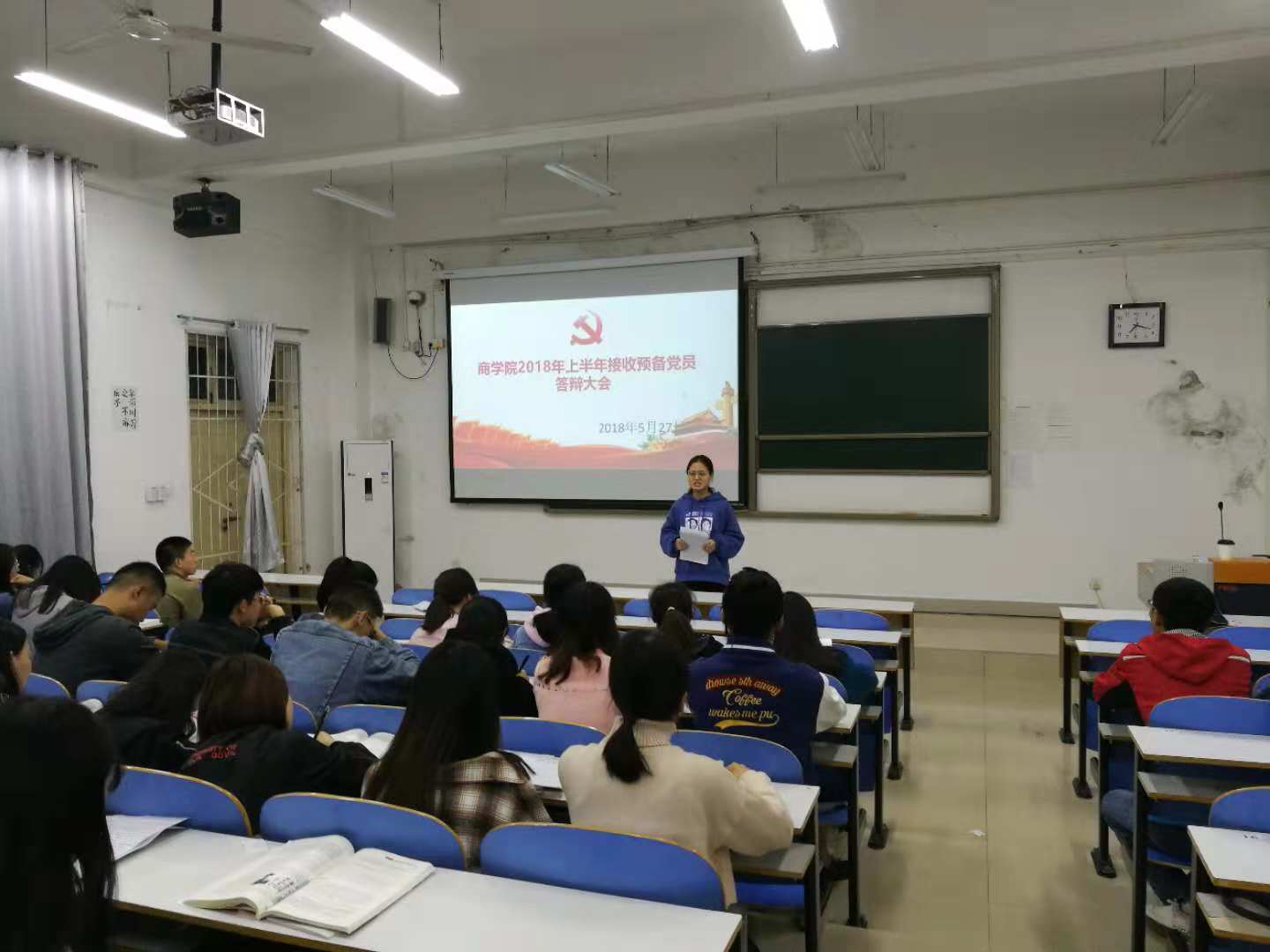 为了响应党的号召,发挥党的先锋模范作用,培养更加优秀的共产党员。5月27日,信阳师院英国365集团于经管楼103召开预备党员答辩大会。出席此次答辩的有团委老师韩月华和18年上半年即将接受的预备党员。
