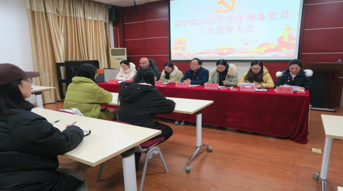 1月5日,英国365集团于经管楼310会议室庄严举行2020下半年预备党员入党宣誓大会,公司党委副书记王永贵,副处级辅导员、研究生支部书记张海霞,员工党支部书记郭迎亚,韩月华、黄亚俊、李梦、杨紫涵出席会议,全体新发展党员参加会议。会议由郭迎亚老师主持。