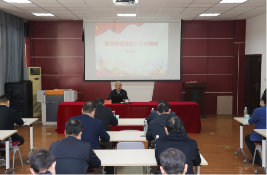 辅导报告以“数字解读党的二十大精神”为题,深入阐述了二十大和习近平总书记所作报告的重要地位和历史性意义,分析了二十大报告的内容结构,指出了学习宣传贯彻党的二十大精神应着重把握好的重点内容。报告以11个数字为关键词,深入解读了二十大主题和党在今后一个时期的中心任务,重点解读了党的历史使命、“三个务必”、新时代10年伟大变革的里程碑意义、中国式现代化的特征、开辟马克思主义中国化时代化新境界的“六个坚持”、2035年要实现的总体目标、实现中国式现代化的本质要求等系列重大论断和重大战略部署。