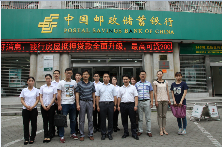 (本网讯 陈颢文 李洋)7月9日下午4时,校团委书记王建旭、经济公司党总支副书记房加帅一行来到中国邮政储蓄银行信阳分行东方红支行亲切看望暑期在此实习的来自公司的七位员工。