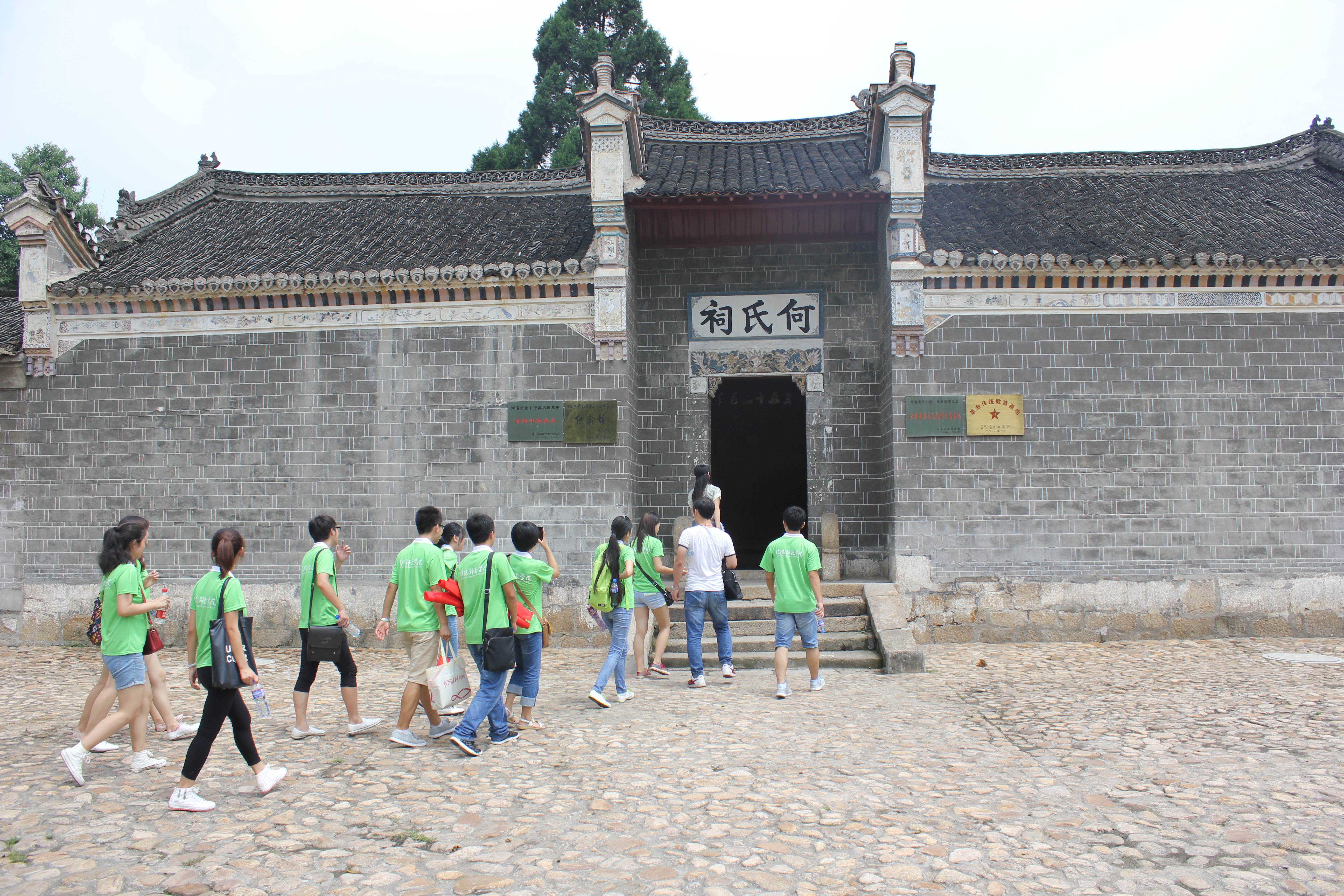 4号上午,经济公司社会实践小分队在当地干部的带领下来到了何家冲,开始了重走长征路。同学们一边前进,一边倾听干部讲解长征的历史知识。经过了近一个小时的路程,大家来到了何氏祠——中国工农红军第二十五军长征纪念馆。在讲解员的细心讲解下,同学们了解到第二十五军长征的历史背景、相关历史名人、传奇事迹和所做出的巨大贡献。参观完之后,同学们来到了第二十五军长征出发点,并在陈老师的带领下对着党旗重温入党誓言,洪亮的声音响彻云霄,再显当代老员工党员的精神面貌。