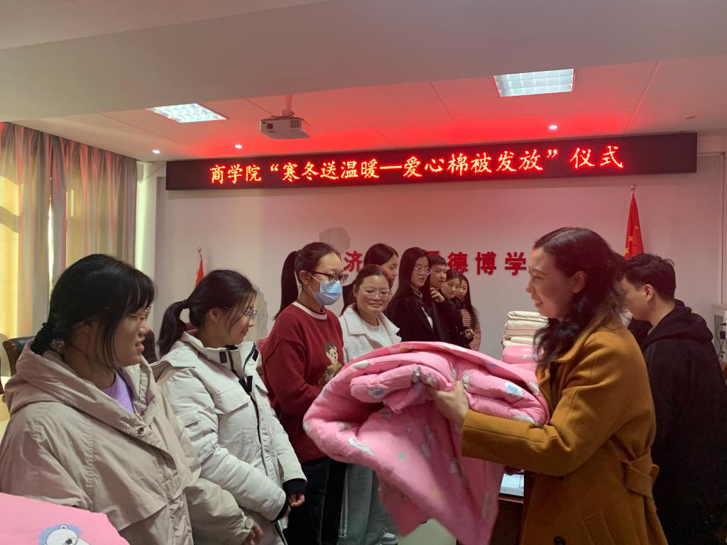 一床床棉被不仅给同学们带来了冬日里的温暖,更是拉近了公司和员工之间的感情,使员工感受到了公司和公司为师生办实事的决心,增强了员工在安心、舒心、暖心的成长发展环境中学习生活的信心。