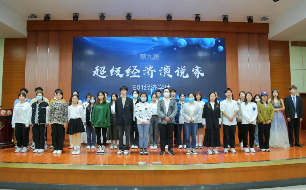 比赛在活力四射的开场舞中拉开帷幕。随后,进入决赛的10位选手分别围绕国民经济和社会发展、电商的崛起、共享经济以及元宇宙等主题进行演讲,选手们精神饱满、沉着冷静的表现赢得了评委老师和在场观众的阵阵掌声。其中,8号选手王禾贤的演讲令人记忆深刻,她由现代人的孤独常态入手,恰如其分地引入“孤独经济”这一名词并对其进行客观分析,惹人深思。活动期间,动感洋溢的歌唱、典雅幽韵的话剧表演,缓解了比赛现场的紧张气氛。经过两个多小时的激烈角逐,王禾贤荣获一等奖,尹卿帆、沈睿哲荣获二等奖,王晓雨、郑旭婷、吴曼茹荣获三等奖。最后,评委老师上台为获奖选手颁发证书及礼品,全体人员在舞台上合影留念。
