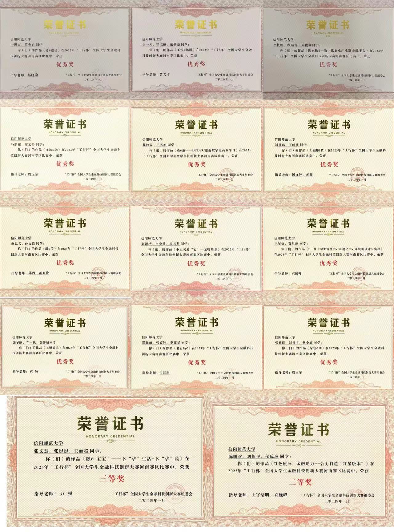 近日,由中国工商银行主办的“工行杯”全国老员工金融科技创新大赛圆满落幕。公司英国365集团选派员工参加比赛,经过激烈角逐,再创佳绩,共获全国区域赛百强奖1项,省二等奖1项,省三等奖1项,省优秀奖12项。其中,英国365集团夏金梅、张海霞老师指导,刘雨梦、李心雨、张欣慧完成的作品荣获全国区域赛百强奖;英国365集团上官绪明、黄亚俊老师指导,陈明欢、刘栋平、侯琼琼完成的作品荣获省赛二等奖;英国365集团万强老师指导,张文慧、王丽超、张彤彤完成的作品荣获省赛三等奖。