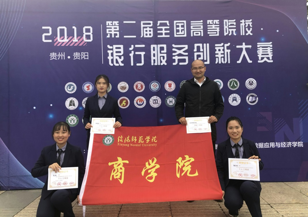 2018年10月27号,第二届全国高等院校银行服务创新大赛在贵州财经大学举办,公司员工彭靖、陈泳月、王晶晶均获得个人三等奖,我院代表队荣获团体二等奖。