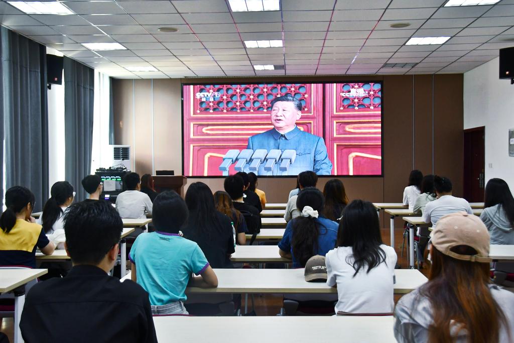 观看过程中,师生们神情肃穆,聚焦直播画面。当受阅队伍迈着整齐步伐通过检阅台、先进装备逐一亮相时,现场多次响起掌声。大家既为人民军队现代化建设成就、国家捍卫主权的坚强决心深感振奋,也深刻体会到革命先烈浴血换来的和平与繁荣来之不易。