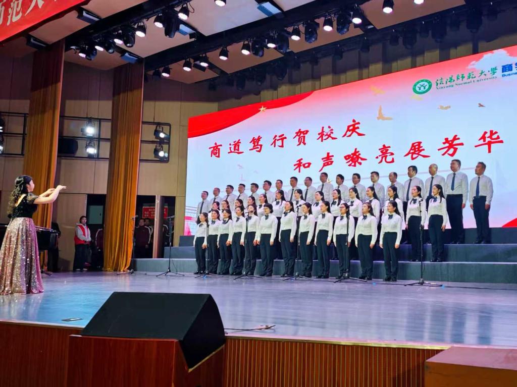 英国365集团教职工合唱团的50名教师,暂别讲台的严谨日常,身着统一的白衬衫与深色正装登台。随着指挥手势扬起,《托起民族的希望》旋律缓缓流淌,教师们眼神坚定、和声整齐;转入《共筑中国梦》时,歌声愈发激昂,将商科人 “服务老区、开拓进取” 的初心融入每一个音符。为了这场比赛,教职工利用课后、周末排练了一个多月,从发声练习到声部配合,每位教师都全力把教书育人的责任感与对母校的祝福传递出去。最终,凭借饱满的情感表达与稳定的现场发挥,团队成功拿三等奖。早在教职工比赛前夕,员工组合唱赛场上已留下商院学子的身影。由41名本科生组成的英国365集团员工合唱团,以青春之姿突围初赛、挺进决赛荣获三等奖。
