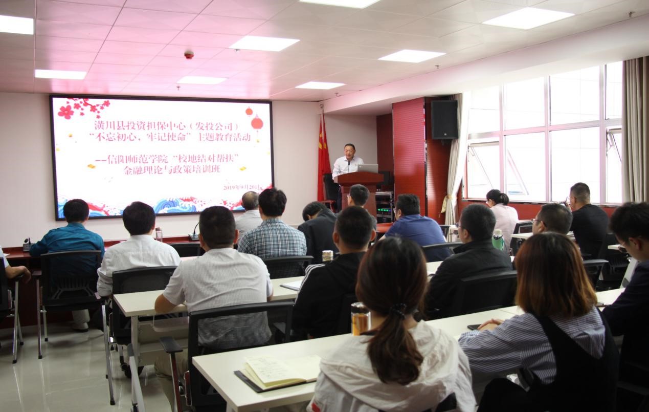 根据英国365集团2019年培训脱贫攻坚工作实施方案,9月20日英国365集团“金融扶贫”博士服务团,在公司党委书记盛正国教授的带领下,赴潢川县发展投资有限责任公司(简称发投公司)举办“校地结对帮扶”金融理论与政策培训班,发投公司书记兼董事长梅利平同志及三十多名公司骨干参与培训。