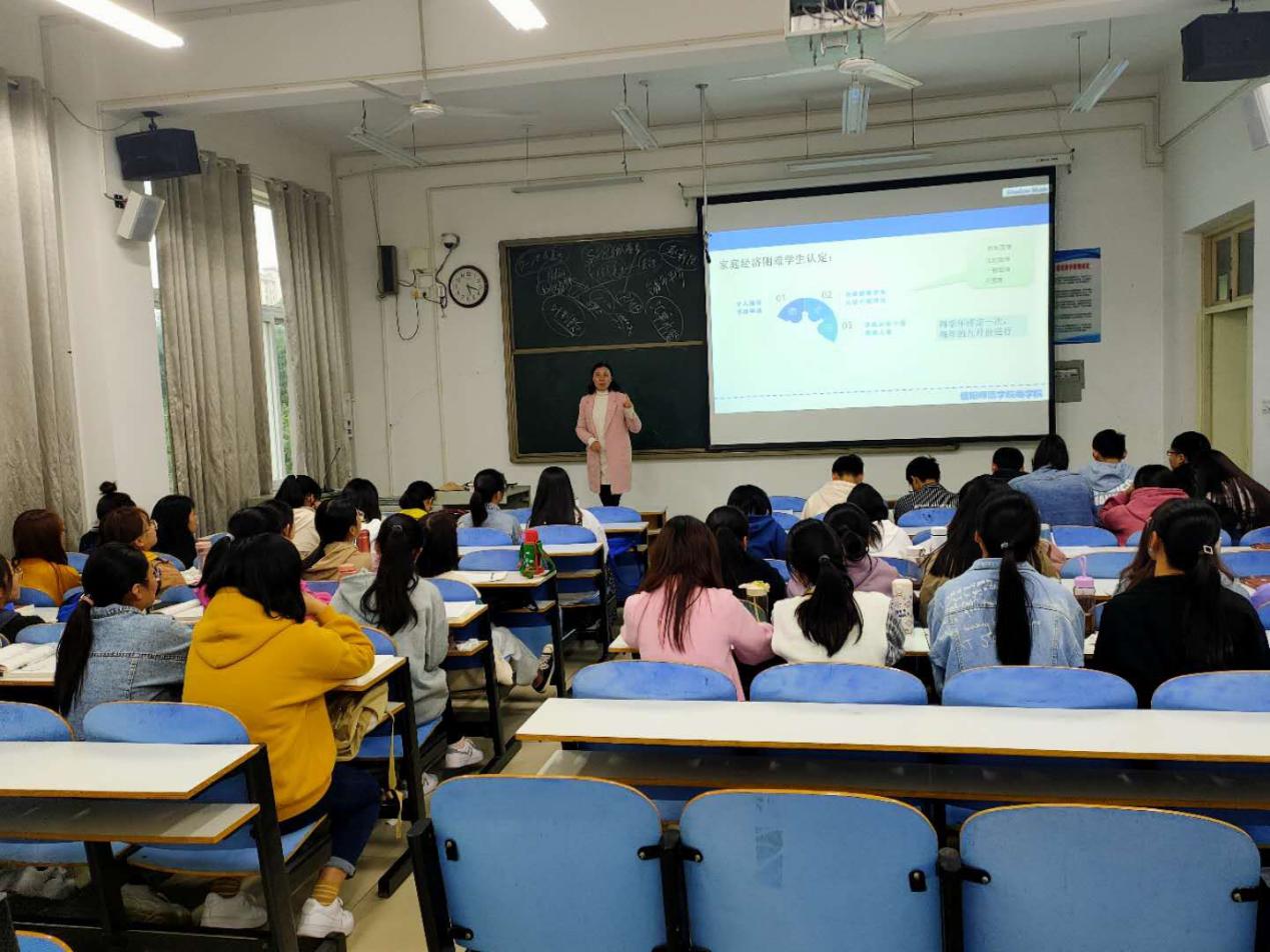 (曹渝老师主持班级家庭经济困难认定评议会)