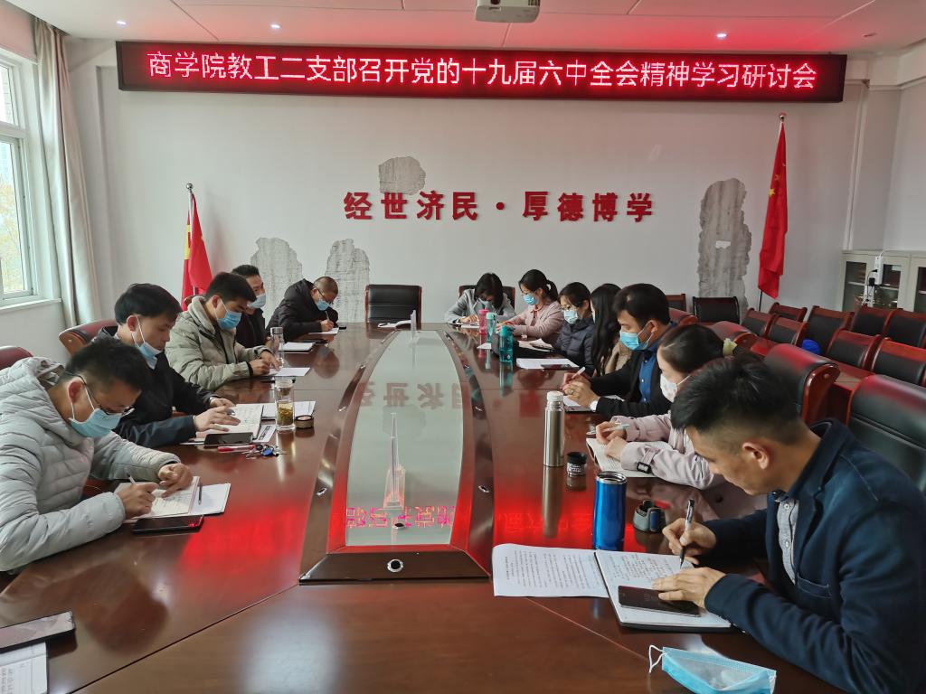 党委带头学。11月15日,公司召开党委理论中心组学习会议,学习党的十九届六中全会精神,讨论部署公司学习具体实施方案。会议上指出,要充分发挥党委中心组的示范带头作用,充分结合商科专业特点和广大师生的思想现状,充分调动广大师生的学习热情,将学习十九届六中全会精神活动常态化。