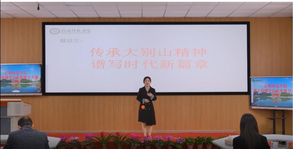 本次大赛由信阳师范公司员工工作处(部)主办,全校近百名辅导员参加。经过初赛环节的基础理论知识测试、案例研讨和谈心谈话三个项目的激烈角逐,12名辅导员脱颖而出,晋级决赛。决赛分为案例分析和理论宣讲两个项目。在案例分析阶段,选手们以AB角问辩的形式围绕案例体现的问题本质、解决路径、实施方法及相关启示等进行了细致阐述。在理论宣讲环节,选手们以扎实的理论基础、饱满的精神状态和富有感染力的语言围绕主题进行宣讲。在决赛中,12名选手案例分析合理到位,处理问题正确得当,理论阐释精准精辟,语言表达清晰流畅,展现了公司辅导员队伍良好的精神风貌和过硬的综合素质。