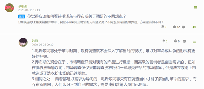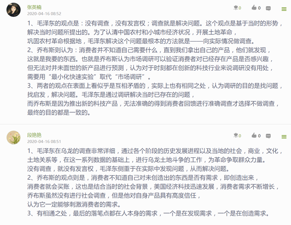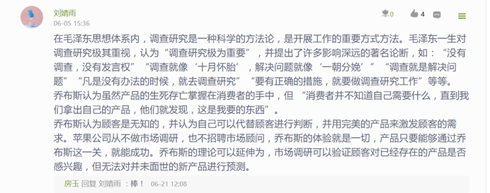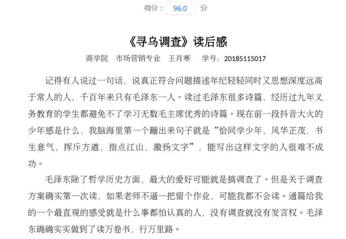 自2020年4月开始,《寻乌调查》学习分别在信阳师范公司英国365集团市场营销专业2017级(55人)、2018级(37人)及信阳公司2018市场营销本1班(56+辅修4人)的《市场营销策划》课程内进行实施,取得了一定的成效。2所公司3个教学班的全部152名员工都按照要求提交了《寻乌调查》读后感及相应市场调研报告。
