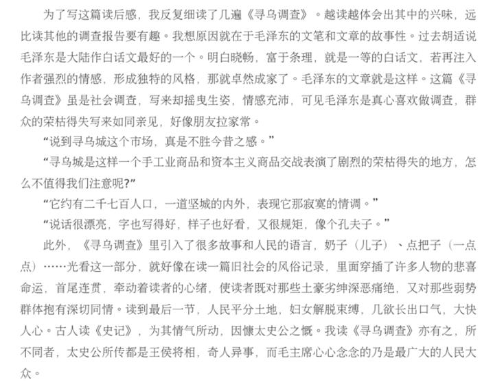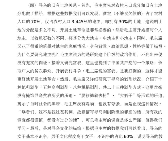 《寻乌调查》是毛泽东主席在土地革命的关键时期所作的重要调研,其内容包括地理位置、历史沿革、行政区划、自然风貌、水陆交通、土特产品、商业往来、商品种类、货物流向、税收制度、人口成份、土地关系、阶级状况、剥削方式、土地斗争等等,全文共分为五章39节,超过八万字。
